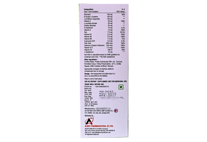 ZEOBEIT PLUS Syrup is a comprehensive hepatoprotective and antioxidant formulation designed to support liver health, improve metabolic functions, and protect against oxidative stress. It should be used under medical supervision.