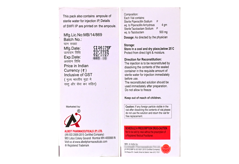 ALBEP-TZ 4.5 g Injection combines Piperacillin, which damages the bacterial protective cell wall essential for survival, and Tazobactam, which inhibits beta-lactamase enzymes. This dual action improves antibacterial effectiveness and reduces resistance.